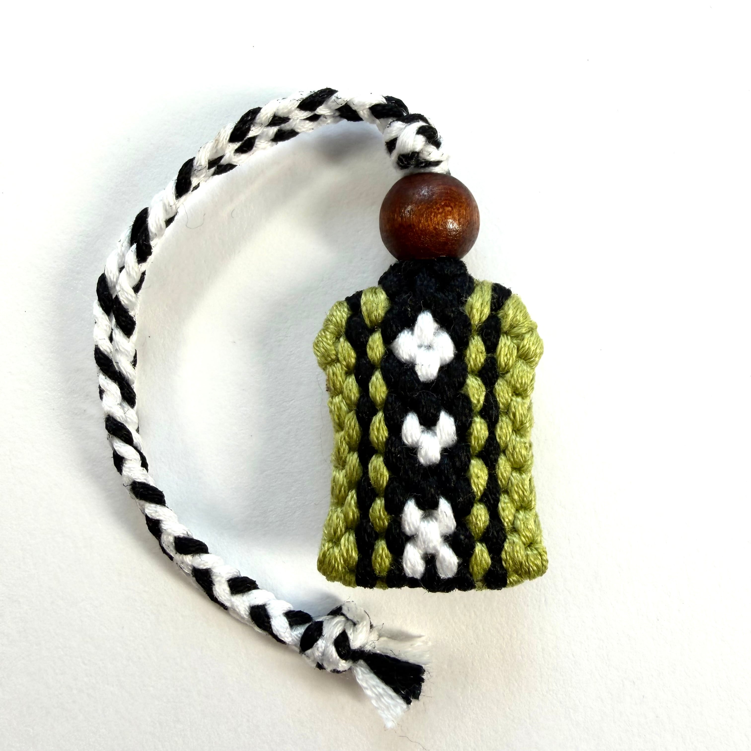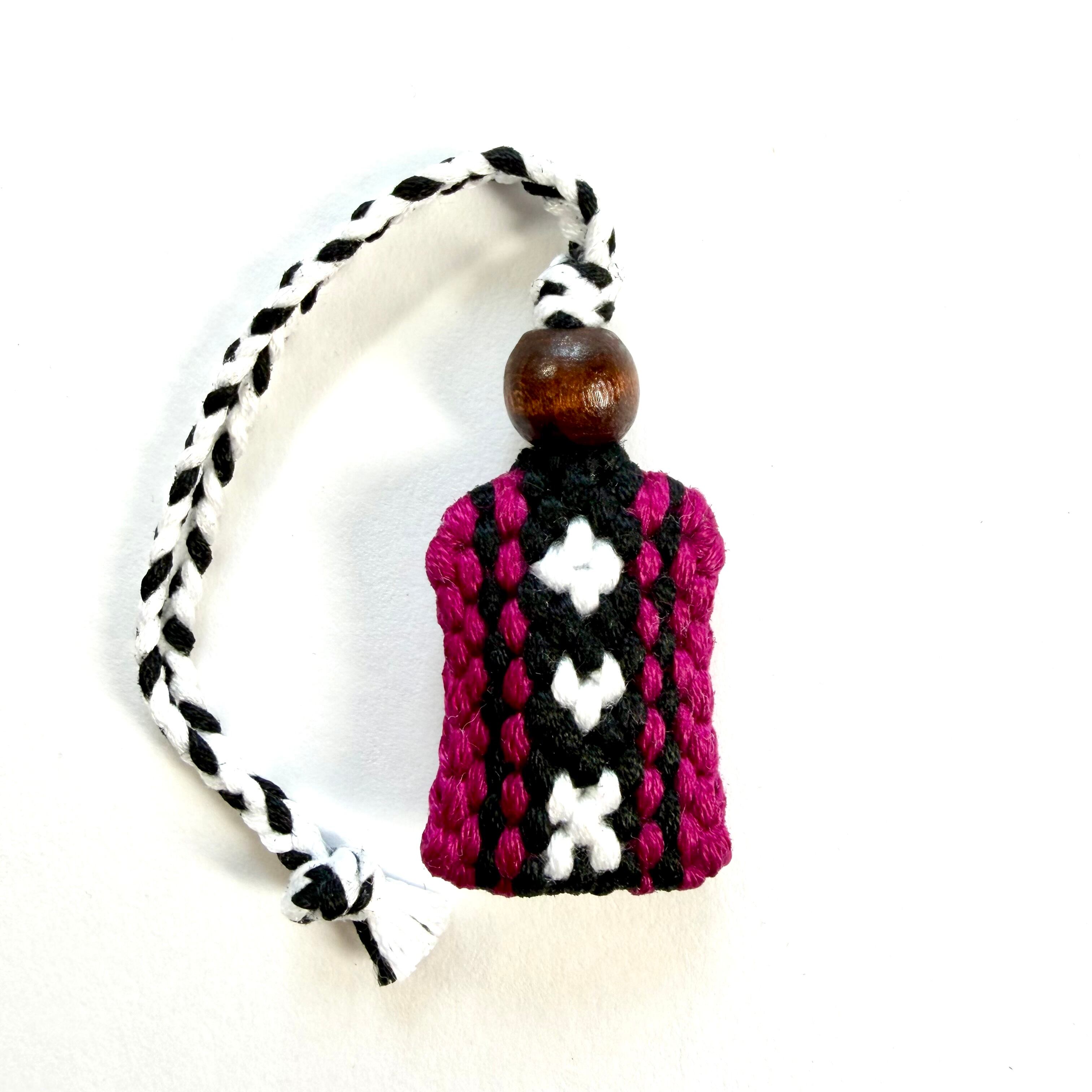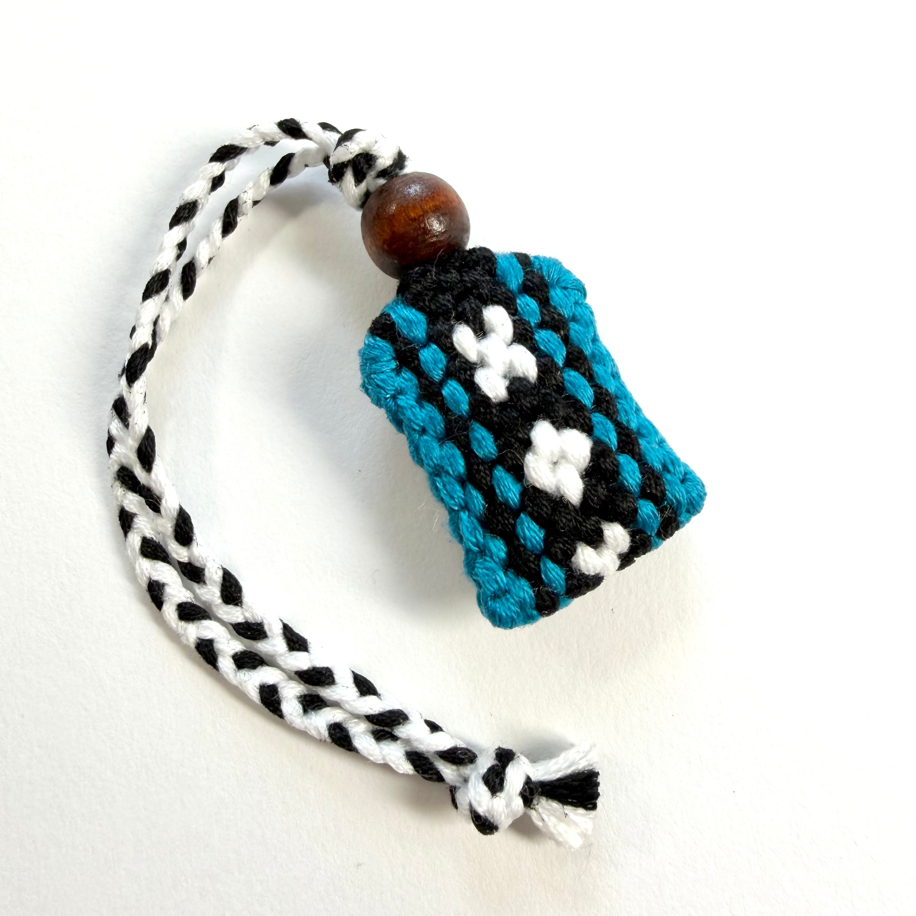 ミンサー模様に更に南城市の形でもあるハート形が編み込まれており、その編み方は他にはないオリジナルで一点一点願いを込めて丁寧に製作しています。