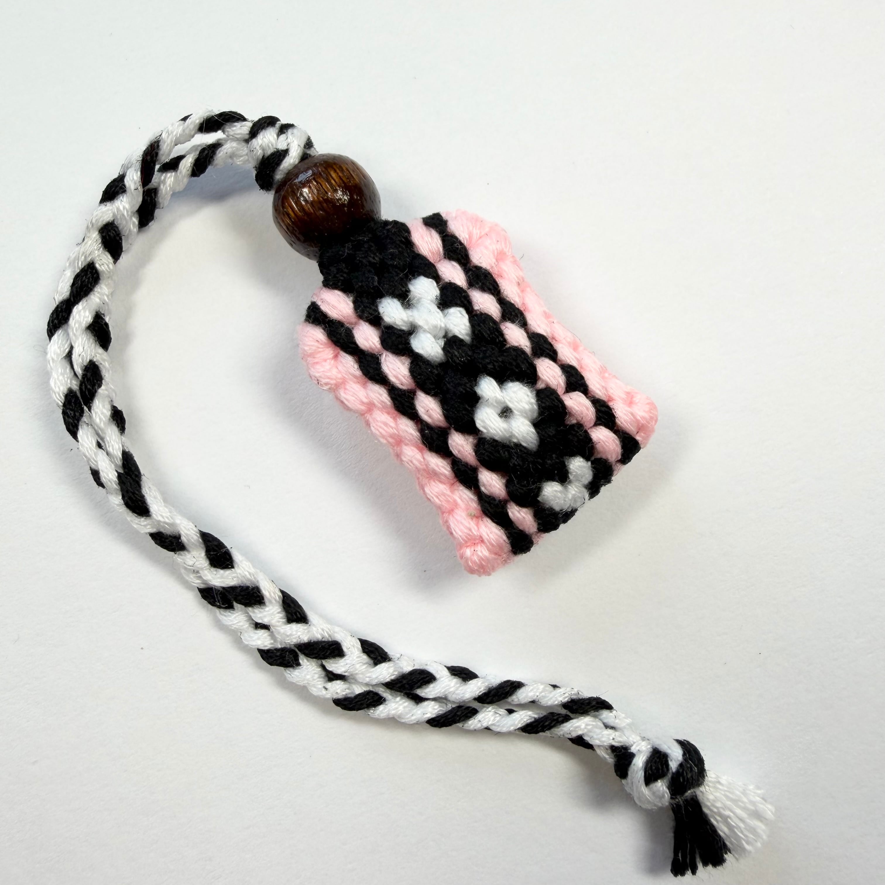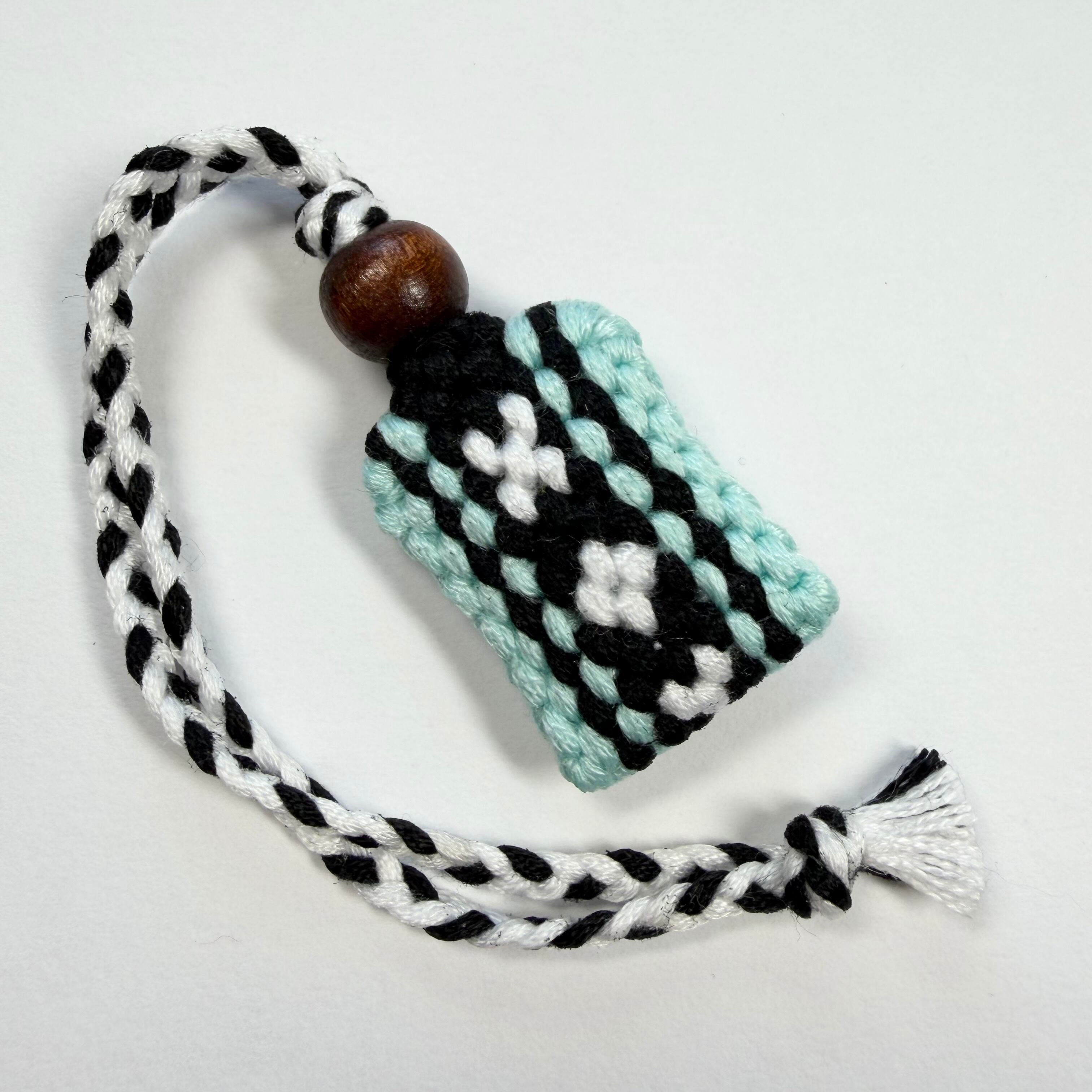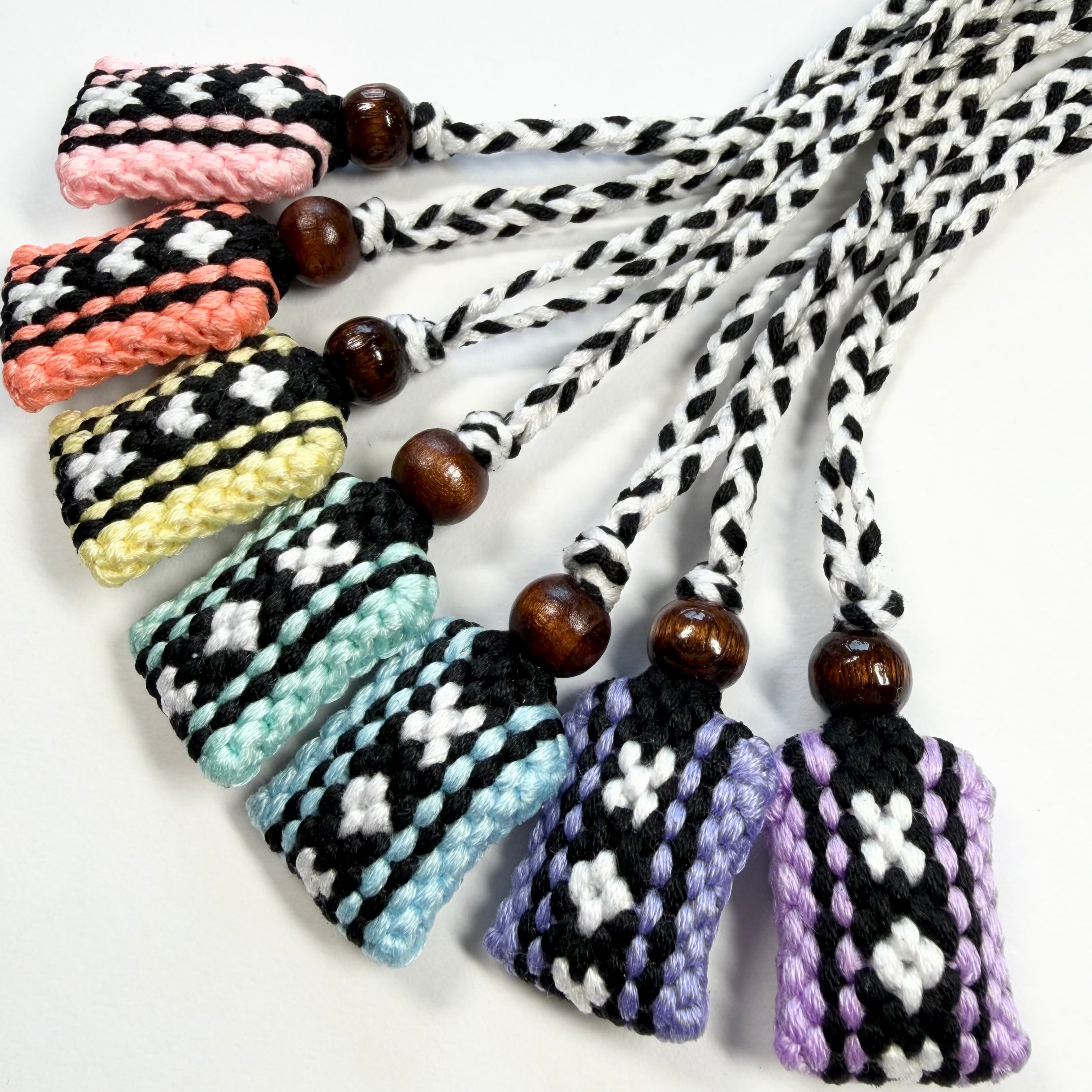 ミンサー模様に更に南城市の形でもあるハート形が編み込まれており、その編み方は他にはないオリジナルで一点一点願いを込めて丁寧に製作しています。